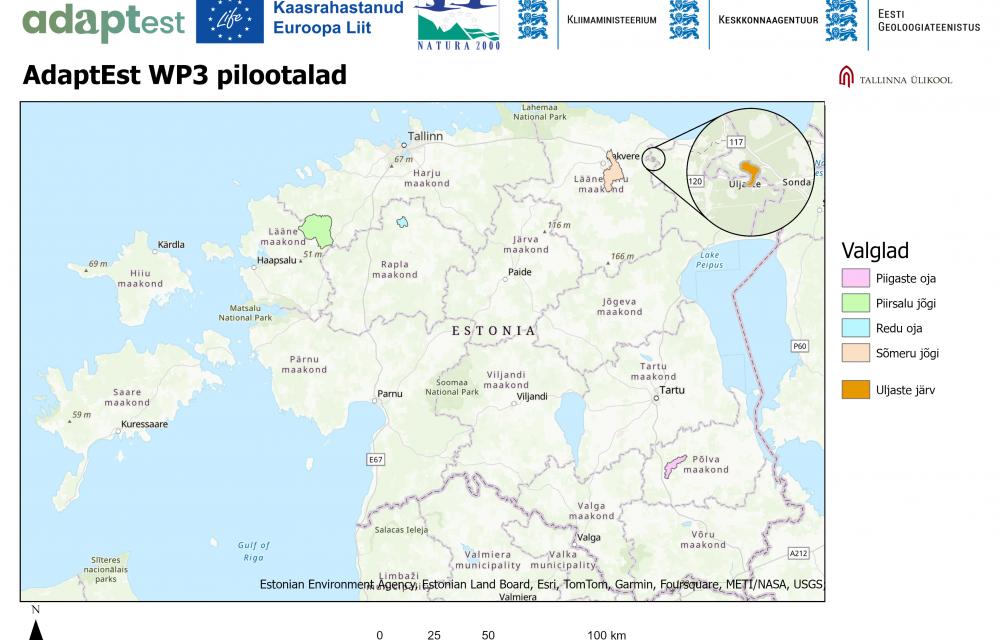 Vastavalt kliimatundlikkusele oleme välja valinud viis pilootala – Piirsalu jõgi, mis paikneb Vihterpalu jõe valglas; Redu oja, mis asub Keila jõe valglas; Piigaste oja, mis on Ahja jõe valglas; Sõmeru jõgi, mis paikneb Selja jõe valglas ja Uljaste järv. Külastasime neid veekogusid Keskkonnaagentuuri, Tallinna Ülikooli ja Eesti Geoloogiateenistuse spetsialistidega, et vaadelda olemasolevaid seirevõrke ning leida võimalusi nende täiendamiseks.